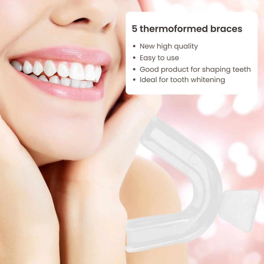 Achieve professional-level dental care at home with our Soft Silicone Orthodontic Mouth Guard and Whitening Tray Set. Designed for comfort, clarity, and durability, this set delivers a perfect fit for every user. Its high-quality thermoplastic material ensures stability even under heat, allowing you to re-mold and reuse multiple times without deformation. Whether you’re protecting your teeth from grinding or enhancing your smile with whitening gel, this dual-purpose tray offers a comfortable, clear, and customizable solution that keeps your oral hygiene in top shape.
