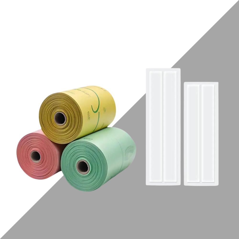 | Color options | Orange handle with green scoop (as shown) and multicolor bag rolls |