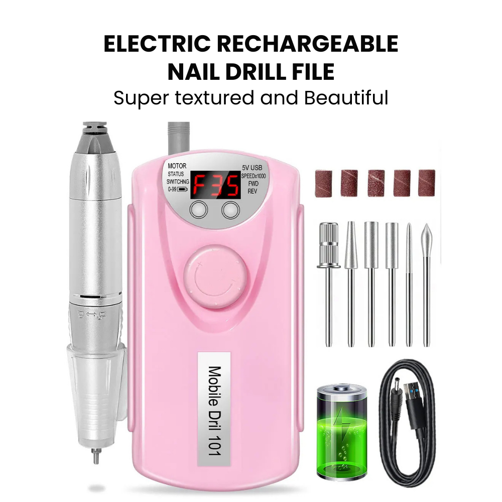 Upgrade your nail routine with this professional 35,000 RPM rechargeable electric nail drill designed for precision, power, and comfort. Built with a strong motor that delivers high speed while maintaining low noise and minimal vibration, this nail drill allows you to shape, smooth, remove gel, and refine nails effortlessly. Its portable and lightweight design makes it ideal for both professional salons and at-home manicures, while the electric rechargeable system ensures cordless convenience wherever you go. With an easy-to-use interface and quick-change drill bits, this nail drill file offers reliable performance, smooth control, and salon-quality results every time.