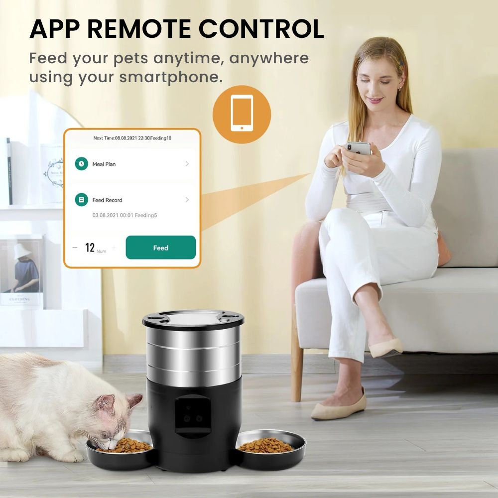 Simplify mealtime for your furry friends with this 4.5L smart automatic feeder designed for both cats and dogs. Featuring dual stainless steel bowls for hygienic feeding, Wi-Fi app control for remote scheduling, and a voice recording function to call pets during meals, it combines convenience with care. The anti-clog mechanism ensures smooth food dispensing, while the locking lid keeps kibble fresh and secure. Compact yet spacious, this feeder measures 28cm tall and 19cm wide, making it the ideal solution for reliable daily feeding. Whether you’re home, at work, or away, you can keep your pets happy, healthy, and consistently fed.