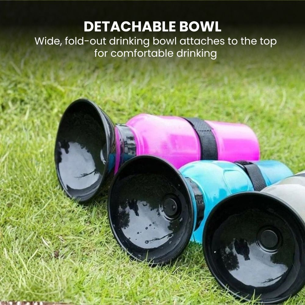 Keep your dog hydrated anywhere with this 500ml portable dog water bottle — a leakproof, one-hand operated dispenser with a detachable fold-out bowl that makes travel, walks and hikes simple and mess-free; made from food-grade BPA-free plastic, it includes a secure valve to prevent spills, a handy strap/carabiner for attachment, and a split design that’s easy to clean — perfect for busy pet parents who want fast, sanitary water on the go.