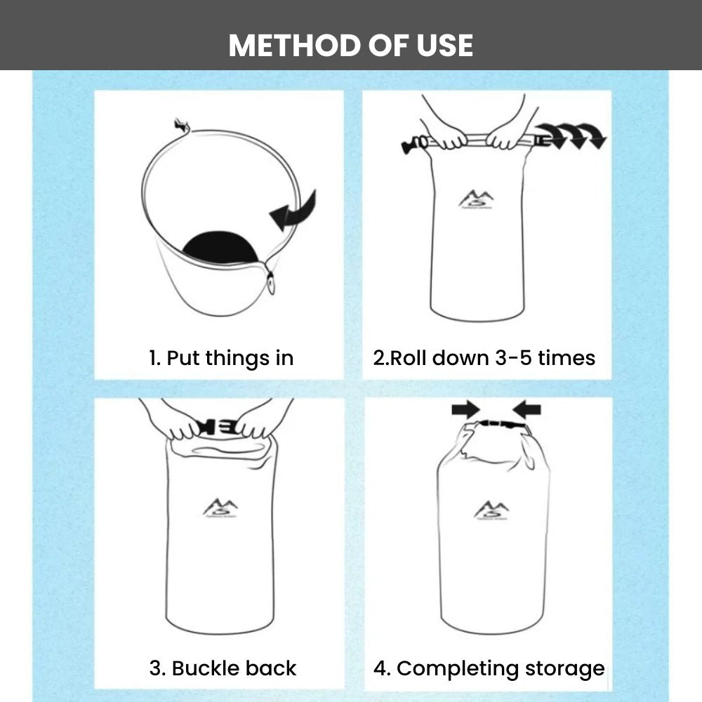 | Waterproof Rating | Waterproof when properly rolled and clipped (not a certified IP rating) |