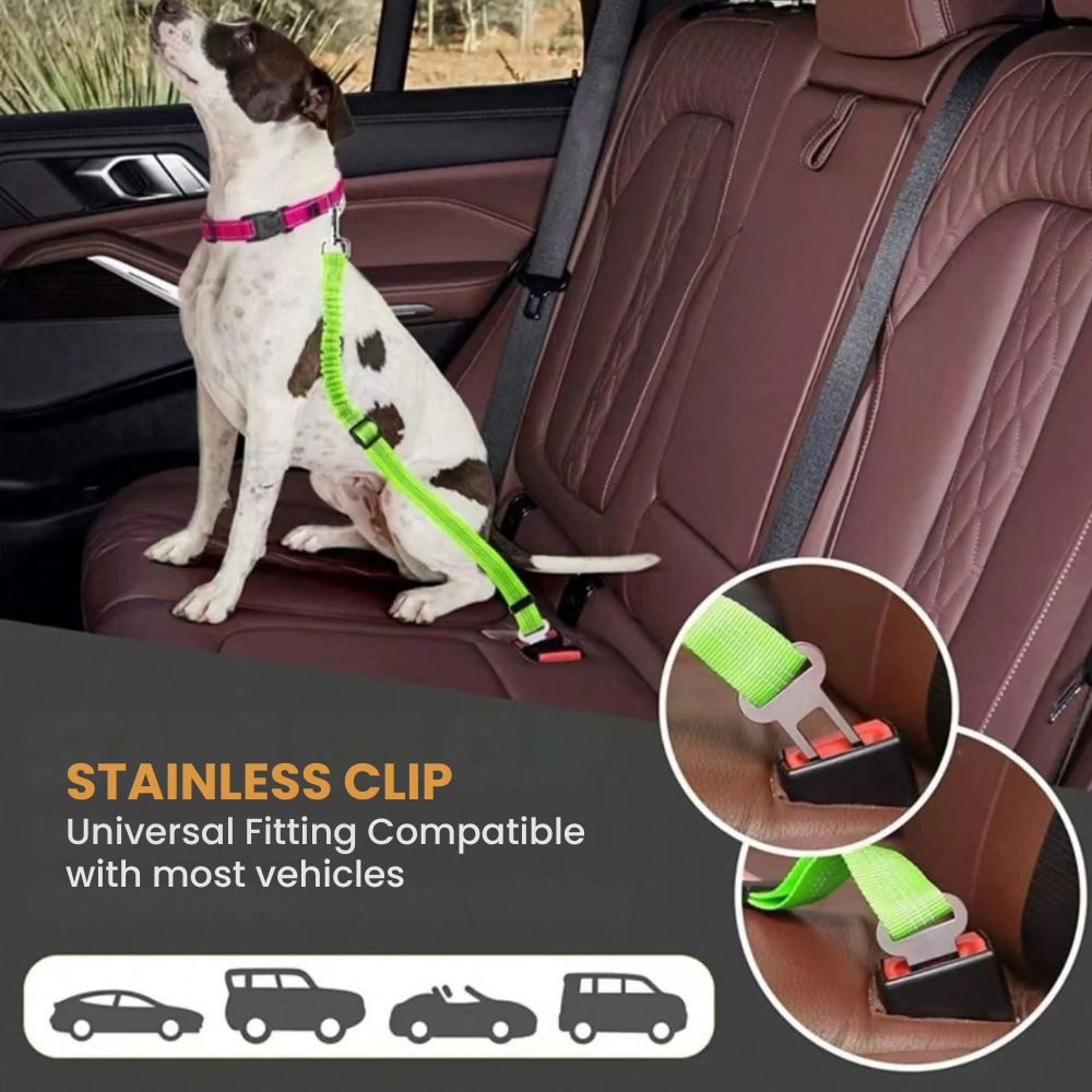 | Installation | Clips to pet harness + inserts into car seatbelt receiver |
