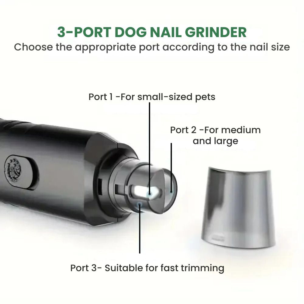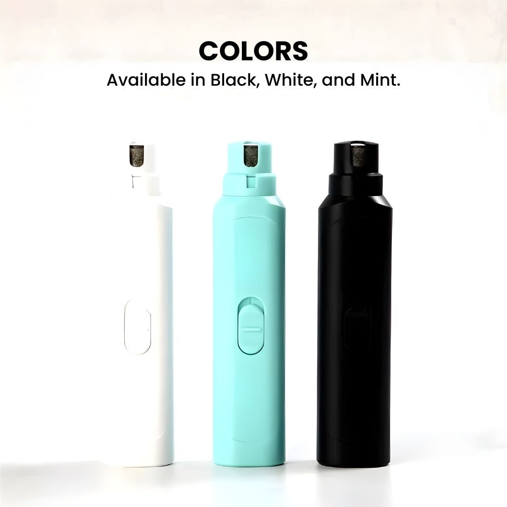 A compact, easy-to-use nail grinder designed for small dogs and cats, this mini pet trimmer delivers gentle, precise grinding with low vibration so anxious pets stay calm; battery-powered for true portability (2×AAA, not included), three grinding ports for controlled filing, and a slim, ergonomic body that fits comfortably in your hand—perfect for quick touch-ups at home or on the go, available in Black, White, and Mint.