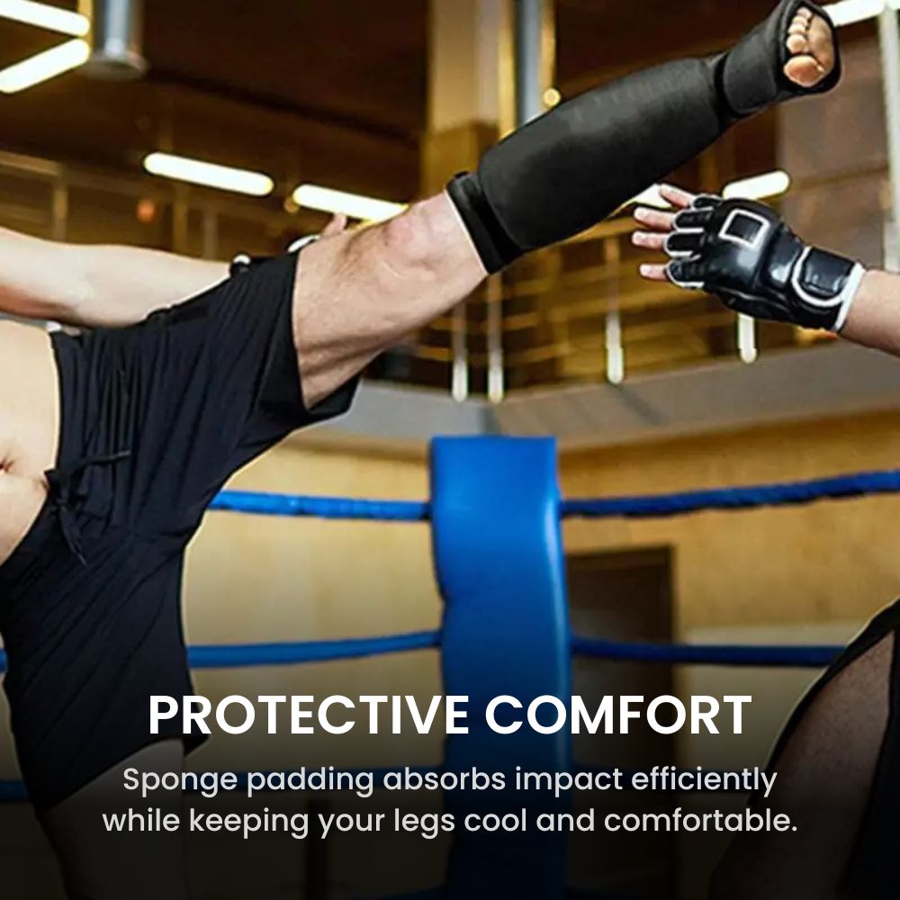 Train harder and safer with these Elastic Muay Thai & Kickboxing Shin Guards — engineered for fighters who demand comfort, durability, and superior performance. Built with a breathable nylon shell and shock-absorbing sponge padding, these shin guards protect your legs without restricting movement. The elastic calf and foot bands ensure a secure, stay-in-place fit throughout your session, while the convenient hook-and-ring closure lets you gear up quickly and lock in a no-slip grip. Whether you’re practicing MMA, kickboxing, or Muay Thai, these guards provide the reliable protection and comfort every fighter needs.