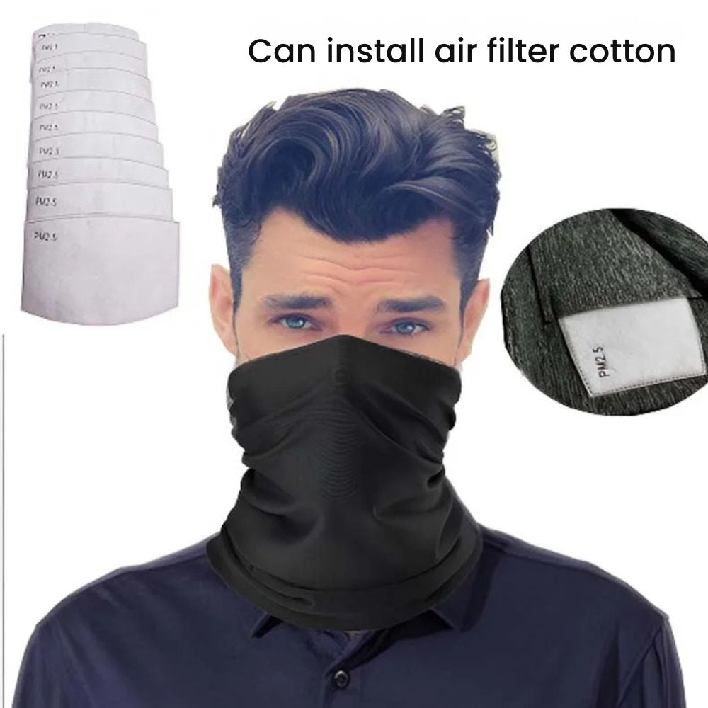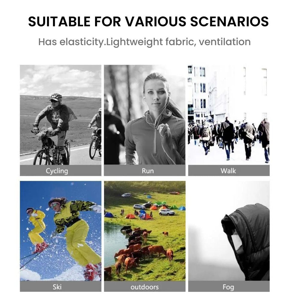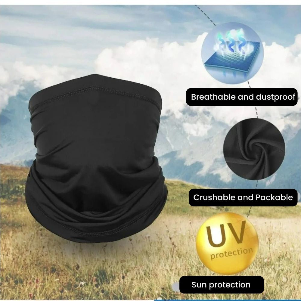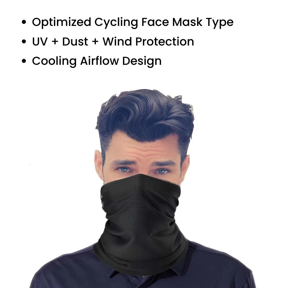 This cooling polyester cycling neck gaiter face mask keeps airflow moving, pulls sweat off skin fast, blocks sun, wind and airborne dust, and feels ultra-light even in heat. Ideal for cycling, hiking, fishing, running, mountaineering and travel. One size stretches comfortably for men & women, and the long tube design allows multiple wearing modes such as neck sleeve, face cover, headband, hair band, or bandana — making it a universal outdoor protection staple for all seasons.