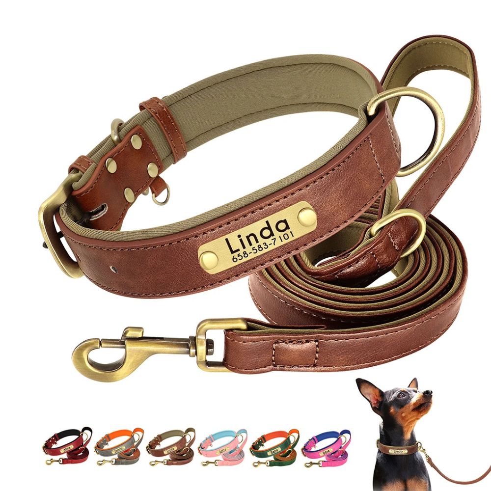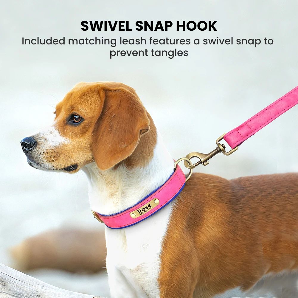 A premium, hand-finished double-layer leather dog collar with a solid brass engraved nameplate — designed to combine classic style with everyday durability. This collar features a soft padded inner lining for all-day comfort, reinforced hand stitching, a secure adjustable buckle, and a strong D-ring plus swivel snap for leash attachment. Customize the polished brass nameplate with your pet’s name to make walks safer and more stylish. Available in multiple colors and sizes with a matching leash option, this collar is ideal for small to large dogs who need a comfortable, durable, and attractive everyday collar.