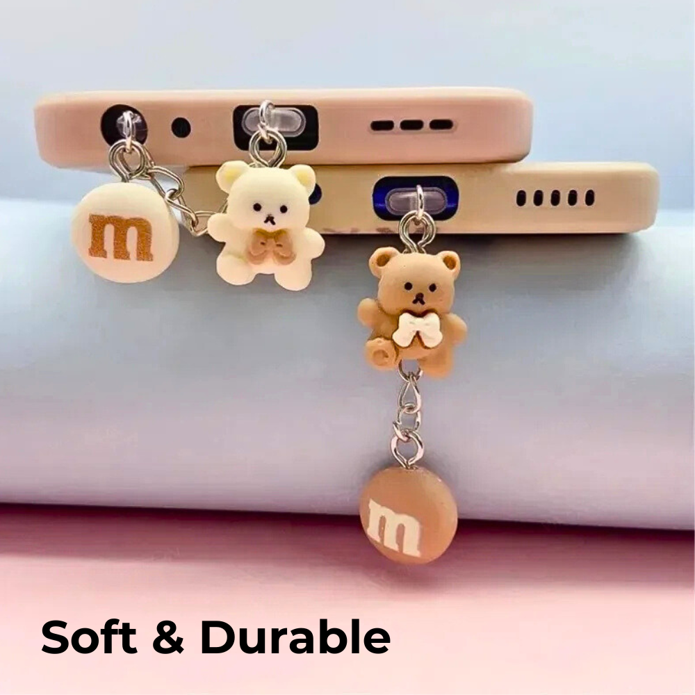 This adorable Cute Teddy Dust-Plug Phone Charm makes your phone look charming while protecting its charging port from dust, lint, and moisture. Lightweight and easy to install, the soft yet durable teddy hangs neatly from your device or case without blocking use — and comes with both Lightning and Type-C adapters so it fits most phones. Beyond protection, it’s a tiny fashion statement: sweet neutral tones, a tactile soft feel, and a removable design that’s ideal for gifting, collecting, or personalizing your phone. Keep your port clean, add personality, and enjoy a small, functional accessory that’s as practical as it is cute.