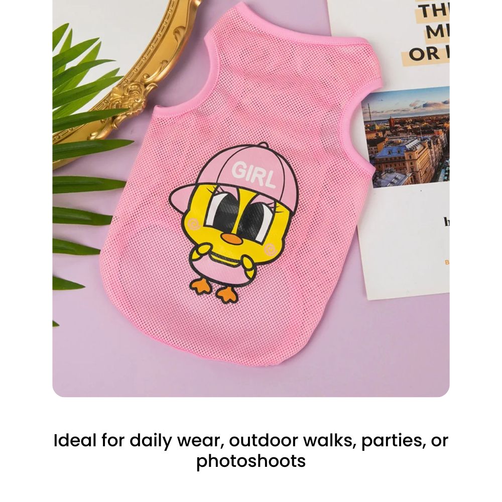 Give your furry friend the perfect summer outfit with our breathable pet t-shirts, designed for small dogs and cats. Made from lightweight mesh fabric, these tees keep your pet cool and comfortable even on hot days. With fun, colorful prints and a stretchy fit, they’re easy to put on, gentle on fur, and ideal for daily wear, outdoor walks, or photo-worthy moments. Whether you want to protect your pet from sunburn, reduce shedding indoors, or simply show off their personality, this t-shirt makes it easy to combine comfort, function, and cuteness in one.