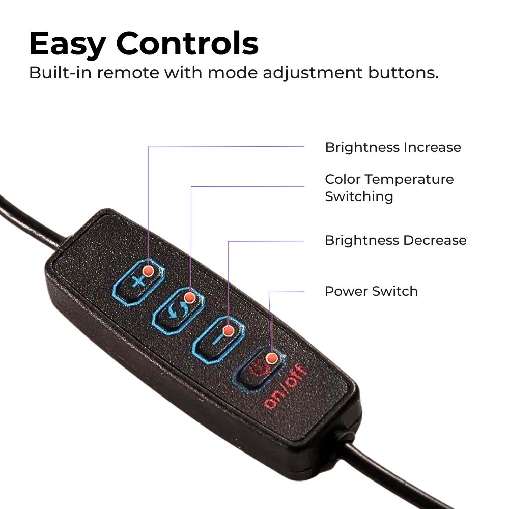 | Control Type | Wired Remote (Brightness & Mode) |
