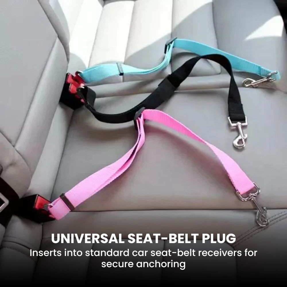Keep your dog or cat safe, calm and secure on every ride with this Universal Pet Car Seat Belt — a simple, reliable solution that connects any pet harness or collar to your car’s seat-belt receiver; the heavy-duty nylon strap and sturdy metal hardware resist wear and pull, while the adjustable length and 360° swivel snap hook let pets sit or lie down without dangerous roaming or tangles; installation takes seconds — just plug the metal tongue into the seat-belt slot and clip to a harness — so every trip, errand and vet visit is easier, safer and less distracting for you and your pet.