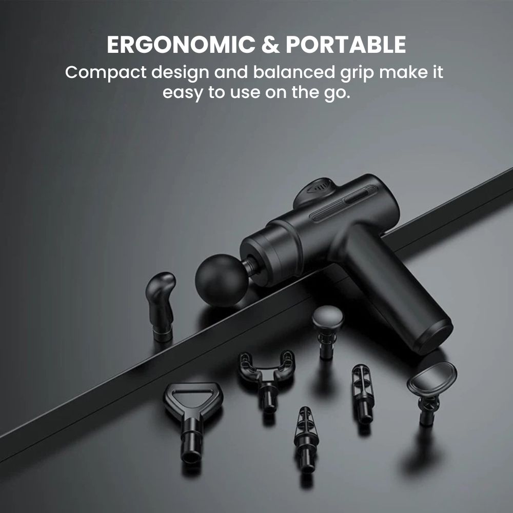 Experience faster recovery and deeper relief with this compact, high-torque massage gun designed for athletes and busy lives. With a powerful brushless motor, 5mm amplitude for deep tissue penetration, and a long 3–4 hour runtime from a USB-C rechargeable battery, it delivers consistent percussion therapy to loosen tight muscles, reduce soreness, and boost circulation. Lightweight and ergonomically balanced, it includes multiple interchangeable heads so you can target large muscle groups, joints, trigger points and delicate areas. Quiet, portable, and easy to use — enjoy professional-grade recovery at home, at the gym, or on the go.