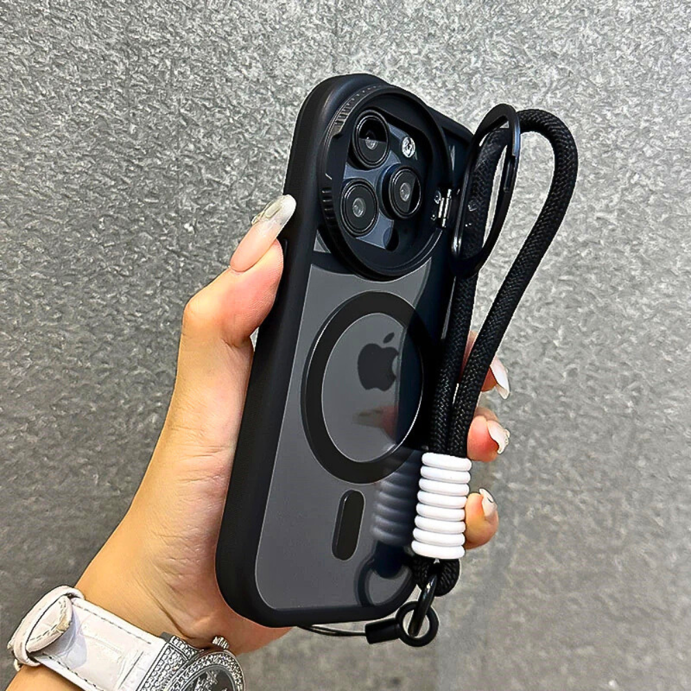 Upgrade your iPhone protection with this premium MagSafe-compatible clear case featuring a built-in metal kickstand, detachable wrist lanyard, and raised lens protector. Designed to combine style, durability, and everyday convenience, this slim yet shockproof case offers strong magnetic charging, scratch resistance, and secure grip without adding bulk. Perfect for hands-free video calls, selfies, or movies, while keeping your phone safe from drops, scratches, and bumps.