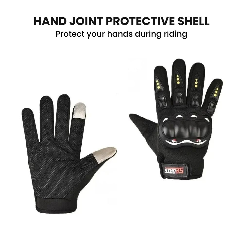 Experience safer, more confident rides with these Armored Motorcycle Gloves — designed to combine proven impact protection, everyday comfort, and modern usability. Reinforced TPU knuckle guards and finger protectors shield you from road impact while breathable, stretch fabric and a secure adjustable wrist strap keep a snug, comfortable fit for hours. Anti-slip silicone patterns on the palm deliver superior control on handlebars, while touchscreen-capable fingertips let you use your phone or GPS without removing gloves. Lightweight but rugged, these gloves are ideal for commuting, touring, and sport riding — engineered to protect, comfortable enough to wear all day, and built to keep you focused on the road.