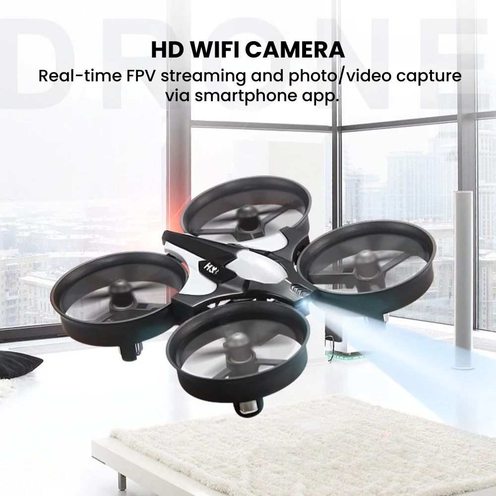 A portable, easy-to-fly foldable mini drone with an HD WiFi camera designed for beginners and travelers — capture smooth aerial photos and live FPV video with altitude hold, stable 6-axis flight control, one-key takeoff/landing & return, intelligent headless/gesture/trajectory modes, three-speed settings for learners to pros, built-in LED lights for night fun, propeller guards for safe indoor/outdoor flights, USB rechargeable batteries for extended play, and a compact controller that fits your hand — the ideal pocket drone for learning, sharing, and exploring with confidence.
