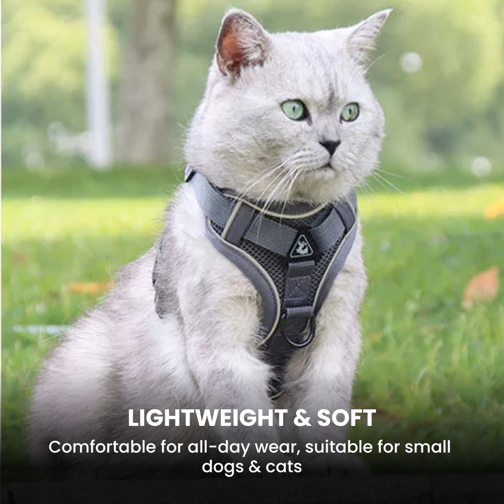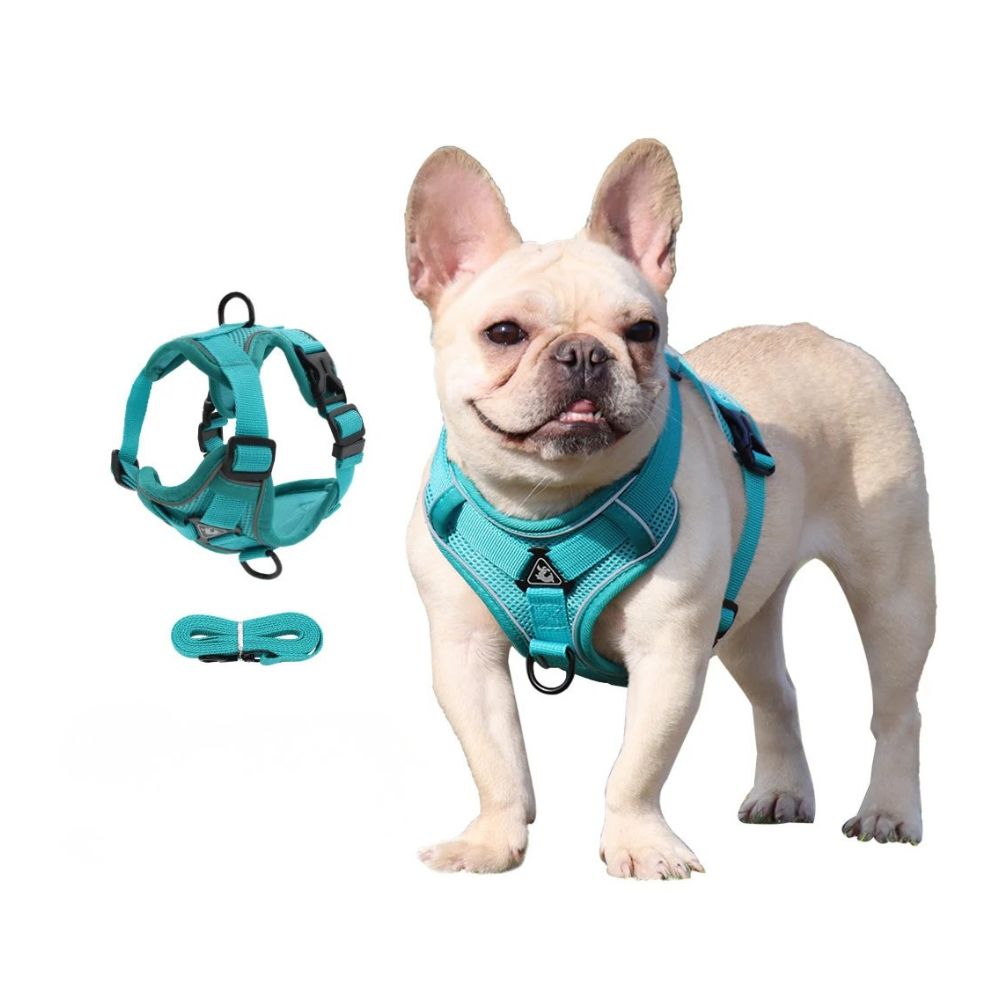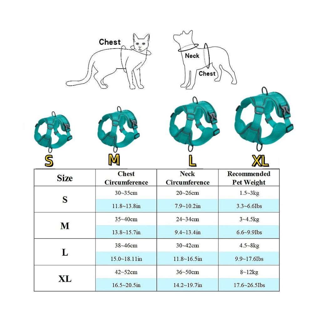This padded, breathable no-pull harness keeps your small dog or cat comfortable, controlled, and visible on every walk — its wide chest panel distributes pressure away from the throat, soft mesh prevents chafing, and multiple adjustment points plus quick-release buckles make it easy to put on and fit snugly; reflective trim enhances nighttime visibility while the sturdy D-ring and included 150cm leash provide secure, dependable control for training, daily walks, and outdoor adventures.