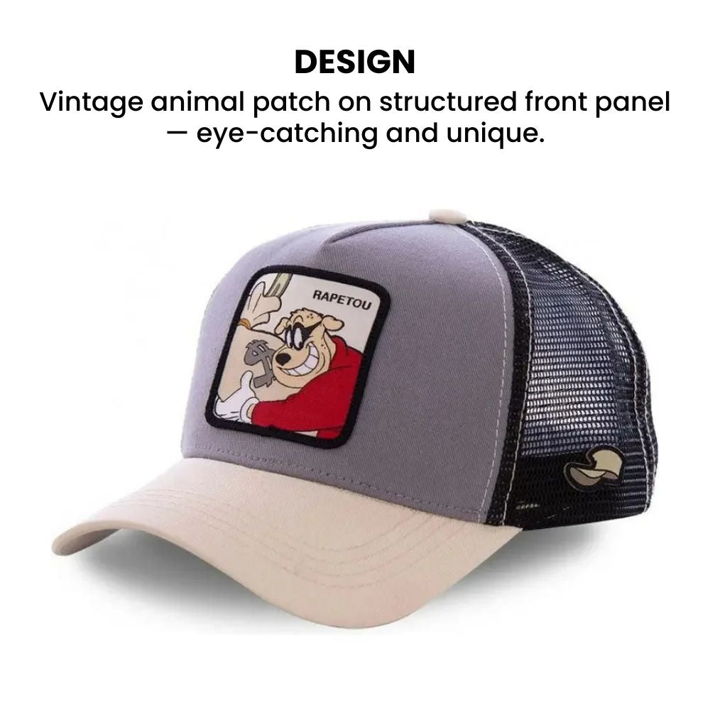 | Material | Front panel: cotton blend (soft, structured) — Back: breathable polyester mesh |