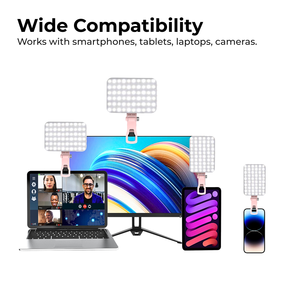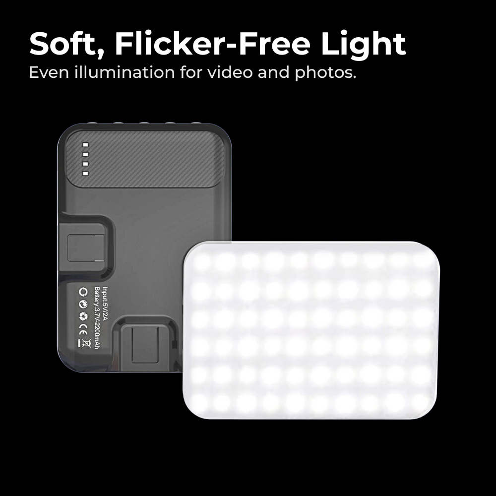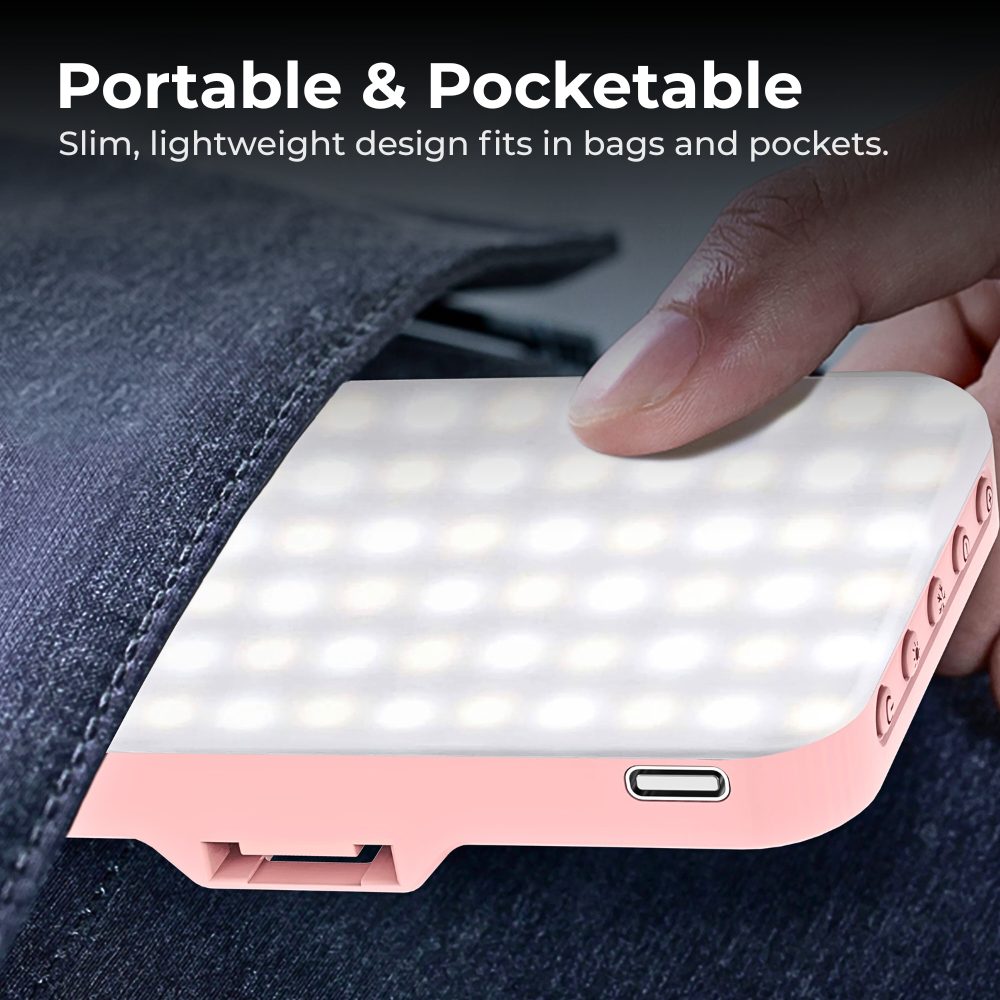 A compact, pocket-sized LED fill light built for creators: this foldable, rechargeable lamp clips to phones, mounts on tripods, and rotates for multi-angle lighting; choose warm-to-cool color temperatures and multiple brightness levels to get flattering, flicker-free light for selfies, makeup, live streams, and product shots — lightweight, USB-chargeable, and easy to carry so professional-looking lighting is always within reach.