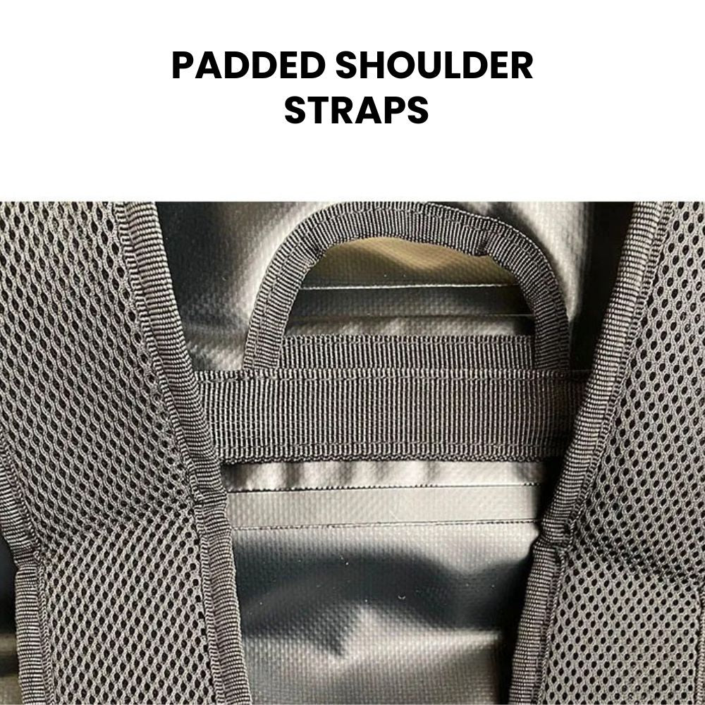 | Harness / Straps | Padded shoulder straps + quick-dry harness, chest strap |
