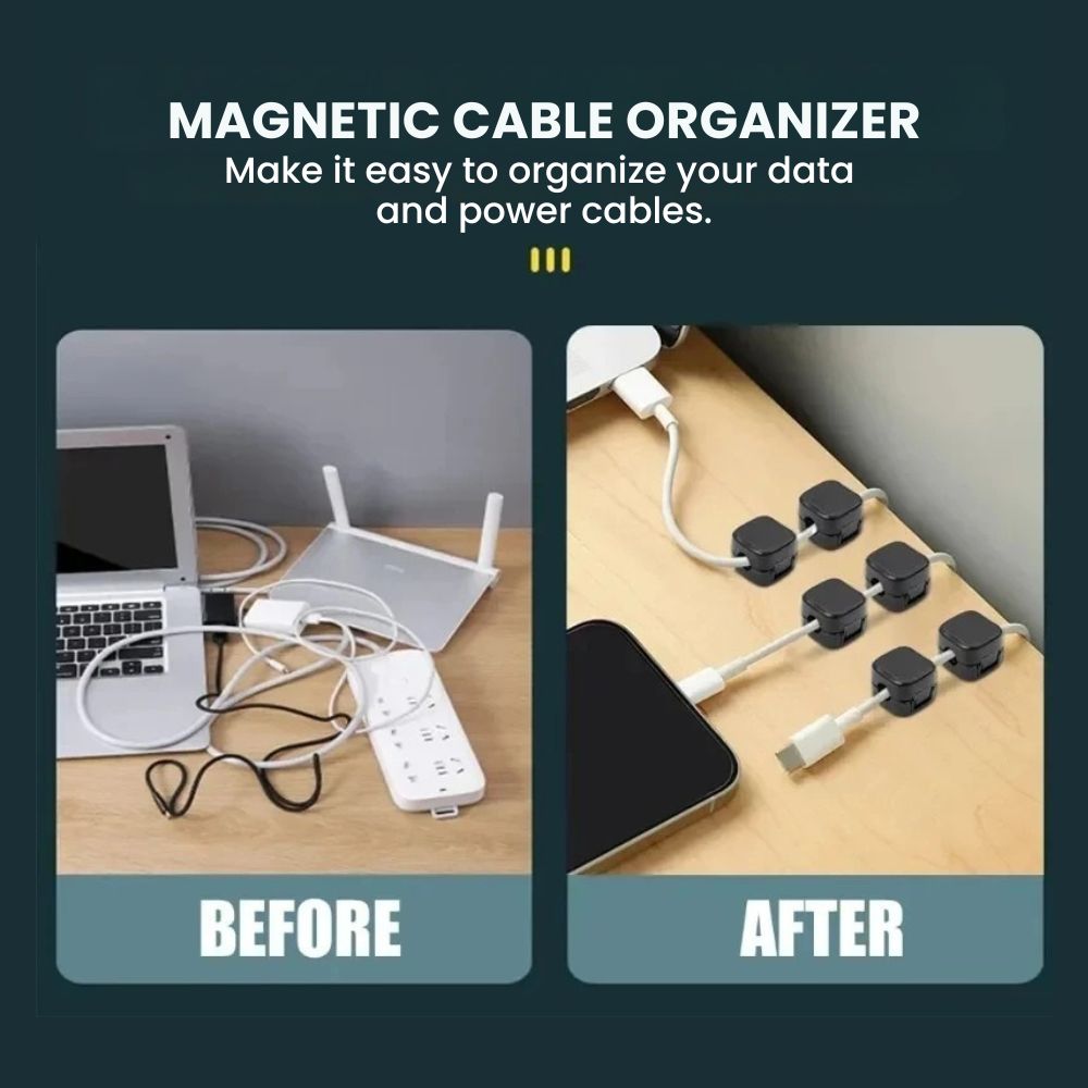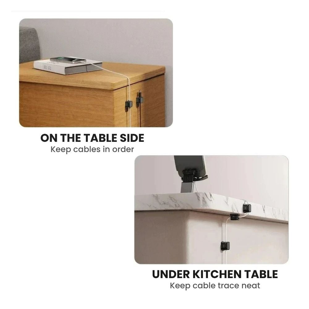 Say goodbye to messy desktop cables — these magnetic cable organizer clips keep chargers, earbuds, and cords neatly anchored and instantly accessible. Engineered with a powerful embedded magnet and a clear acrylic adhesive pad, each clip securely holds cables (up to 7.5mm diameter) on desks, nightstands, TVs, and more without bulky mounts. Installation is effortless: clean, peel, stick — then snap cables in and out smoothly. The strong sticky backing works on wood, glass, plastic and painted surfaces while the magnetic design lets you route, reposition and adjust cables without strain. Sleek minimal styling in black or white blends with modern setups and supports a wide range of cords — USB, Lightning, Type-C, earbuds and thin power cables — making it the perfect small accessory to declutter and protect your workspace.