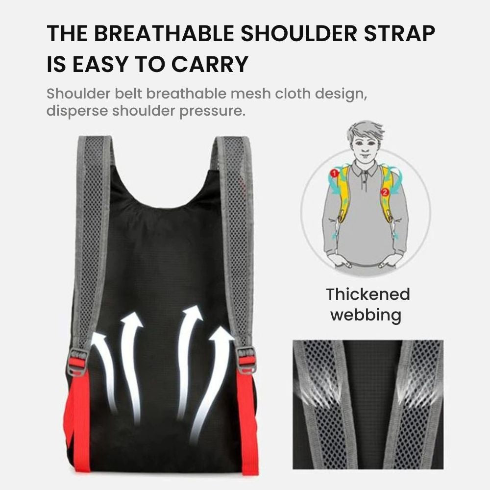 Discover the perfect balance of convenience and durability with this ultra-light foldable backpack. Weighing just 85g, it’s made from waterproof polyester fiber to protect your essentials from splashes and light rain. With a spacious 20L capacity, multiple compartments, and side mesh holders, it keeps your gear organized on the go. Breathable straps ensure all-day comfort, while its foldable design allows you to pack it into a compact pouch for easy storage. Whether for hiking, travel, or everyday errands, this backpack is the reliable companion you’ll reach for every time.