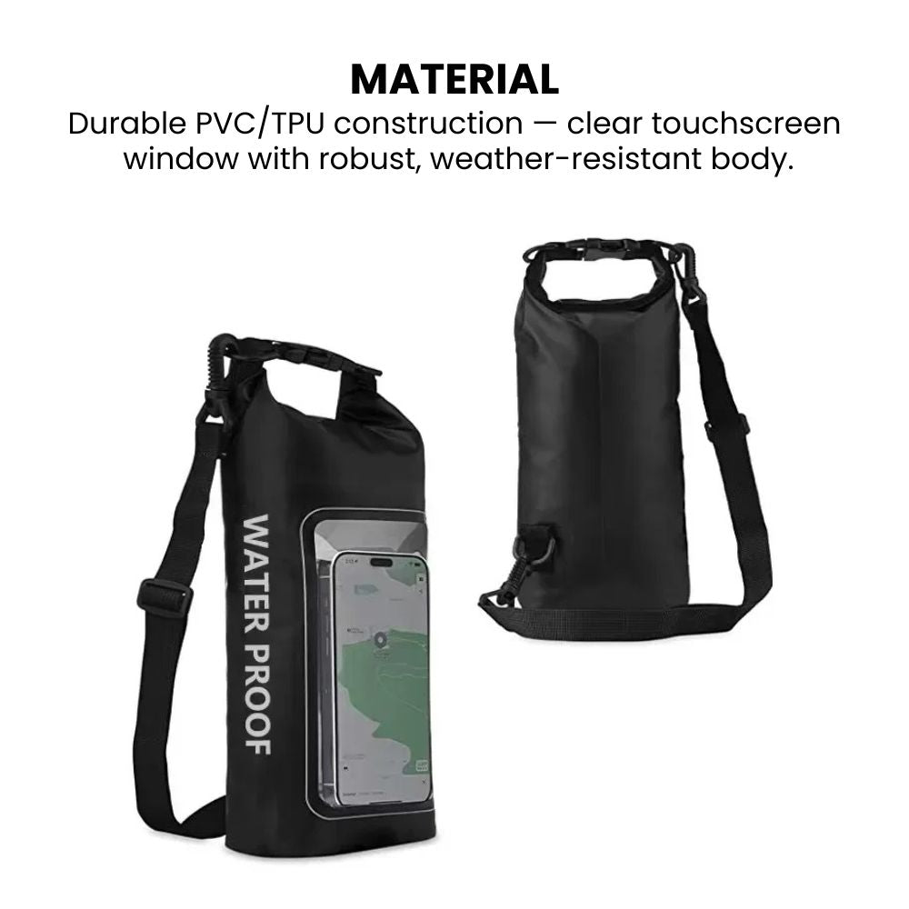 Keep your phone, cards and small essentials bone-dry and close at hand with this IPX6 Waterproof Floating Phone Dry Bag; built from durable clear PVC/TPU with a secure roll-top buckle, it floats on water and preserves full touchscreen functionality so you can snap photos and use maps without opening the pouch — a lightweight 2L size with adjustable shoulder strap and removable wrist strap makes it perfect for swimming, kayaking, beach days, hiking and everyday outdoor adventures while remaining sand-proof, dust-resistant and easy to clean.