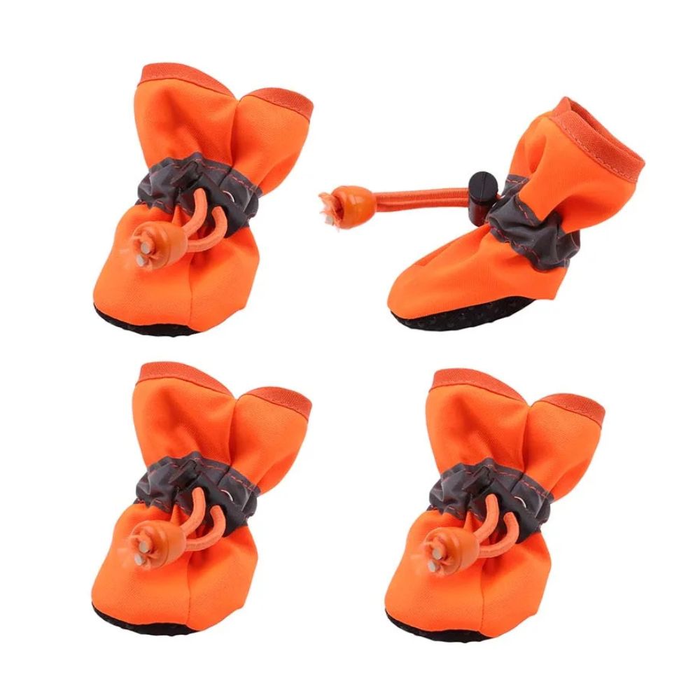 These waterproof dog boots keep paws clean, dry and protected without sacrificing comfort — soft inner lining cushions delicate pads while a flexible anti-slip rubber sole provides traction on wet, icy or rough surfaces; adjustable elastic toggle and secure strap ensure an easy on/off, snug fit for running, hiking or rainy walks; breathable, washable fabric prevents odors and lets your pup move naturally while protecting floors and furniture from mud, salt and claws.