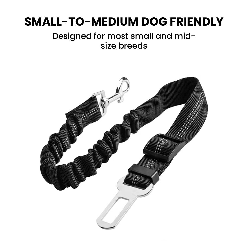 This elastic dog car seat belt combines safety, comfort, and convenience for every ride — a stretchable bungee tether that absorbs shocks, a 360° swivel snap for tangle-free movement, and a universal car-buckle that locks easily into any standard seatbelt socket; built from heavy-duty nylon and reinforced metal hardware, it gives small-to-medium dogs freedom to sit or lie down while preventing sudden jumps or distracted driving, and is quick to adjust, simple to attach, and available in multiple colors for a safer, calmer trip every time.