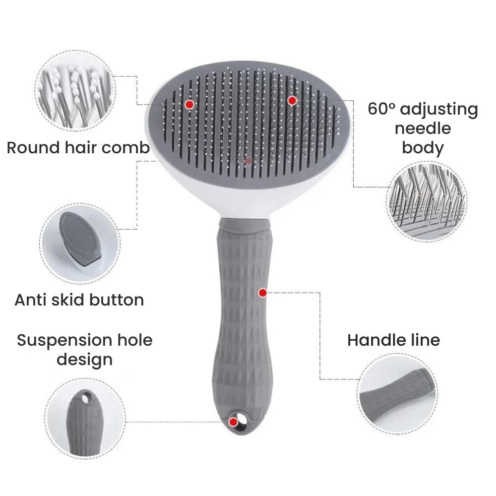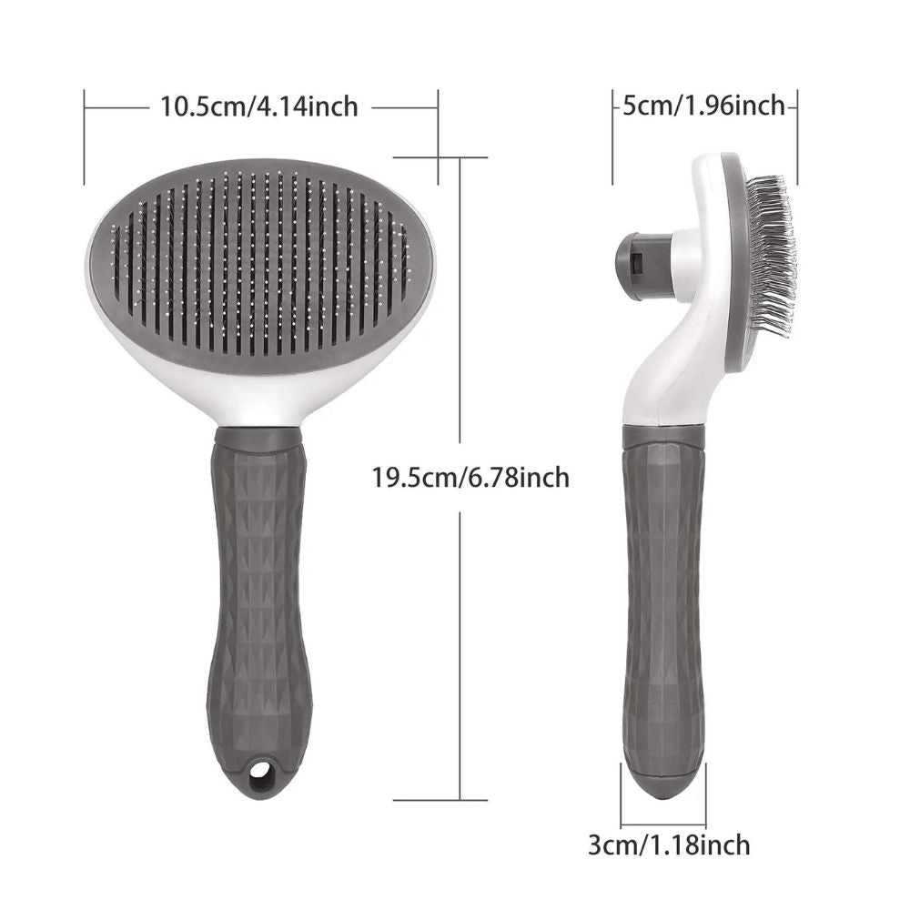 This ergonomic self-cleaning pet grooming brush removes loose fur and tangles, massages your pet’s skin to improve circulation, and reduces shedding with minimal effort — ideal for cats and dogs of all coat types, built for comfortable daily use, wet or dry, and designed for easy push-button cleaning and a non-slip grip to make grooming calm, quick, and highly effective.