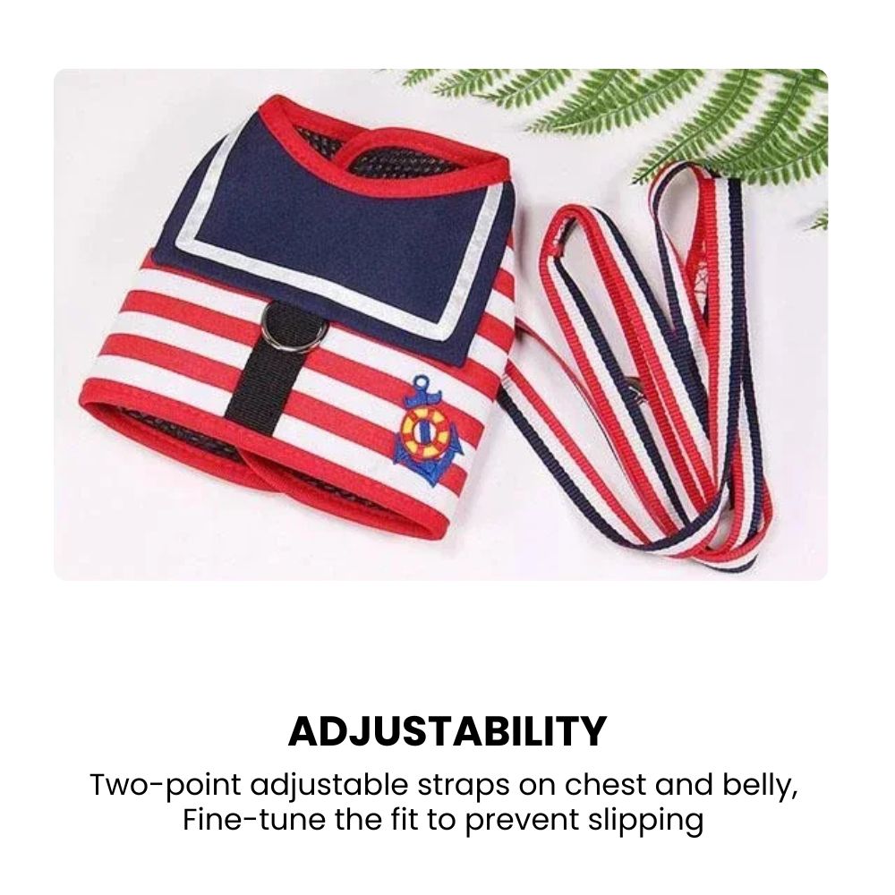 A soft, breathable striped cotton dog harness and matching leash set that makes walks safer, comfier and more stylish — lightweight padding prevents chafing, adjustable straps let you dial in the fit for puppies and small-to-medium dogs, a solid D-ring and sturdy buckle give reliable control, and the included matching leash provides the perfect length for everyday walks; easy to put on/off, fully machine washable and built to last, this set keeps your pup comfy while looking cute on every outing.