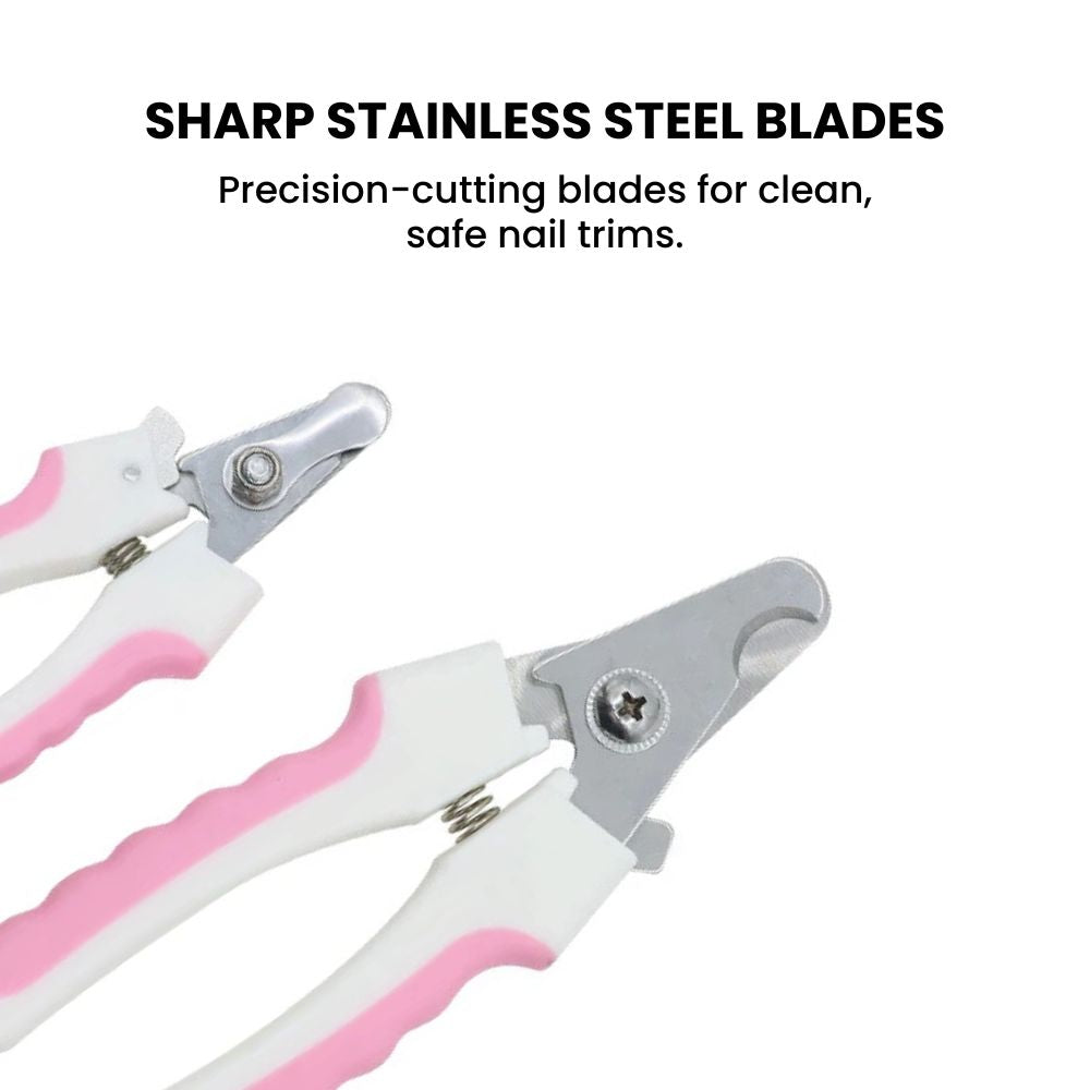 Trim your pet’s nails quickly, safely, and confidently with these ergonomically designed Pet Nail Clippers: precision stainless-steel blades cut cleanly while the safety stop prevents over-cutting; a textured, non-slip handle keeps control comfortable even during anxious pets; the built-in lock makes storage safe and simple; and the included nail file smooths rough edges for a finished look—lightweight and corrosion-resistant, these clippers come in multiple sizes and colors to fit every pet, making them perfect for at-home grooming, travel, or as a thoughtful pet-care gift.