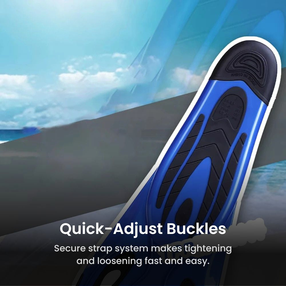 Experience effortless propulsion and superior comfort with our Adjustable Open-Heel Snorkeling Fins, engineered for swimmers, vacation snorkelers, and divers who want a smooth, efficient kick with less leg fatigue. These high-performance fins are built with durable TPR and PP materials, featuring a flexible yet responsive blade that delivers strong thrust in the water while maintaining optimal comfort. The open-heel design with quick-adjust buckles ensures a secure fit for multiple foot sizes and allows wearing barefoot or with booties. Anti-slip soles provide safety on wet surfaces, and the lightweight design makes these fins perfect for travel, cruises, and beach trips. Whether you're exploring reefs, training, or enjoying leisure swimming, these fins offer a perfect balance of power, performance, and convenience.