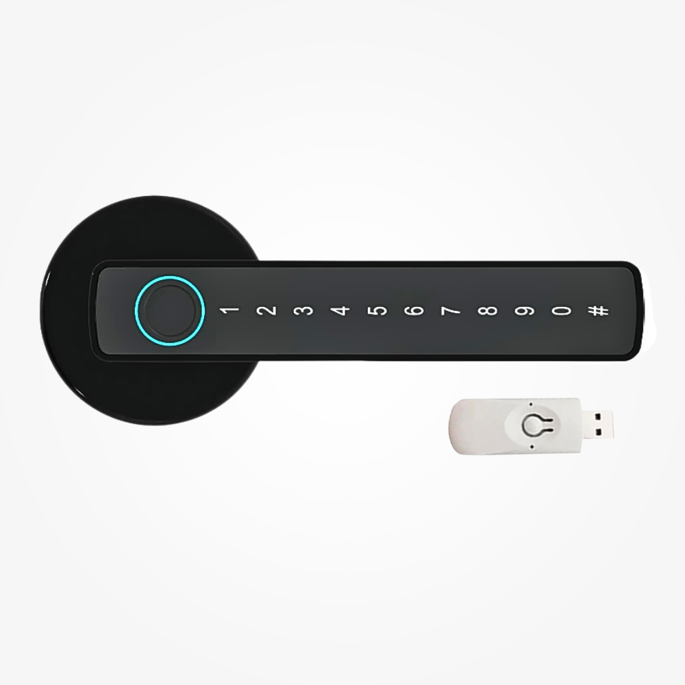 Upgrade your door to a smarter, safer entry: this elegant smart fingerprint lever lock blends robust security with effortless daily convenience — fast biometric unlocking, temporary PINs for guests, and card or mechanical-key backups plus full Tuya app control for remote access and logs. Designed for easy retrofit installation on most doors, it runs months on 4×AA batteries with low-battery alerts and emergency USB power, supports passage mode for busy times, and comes with multiple RFID cards and mechanical keys so your family is ready to go — all with a modern, minimalist look that fits contemporary homes and apartments.