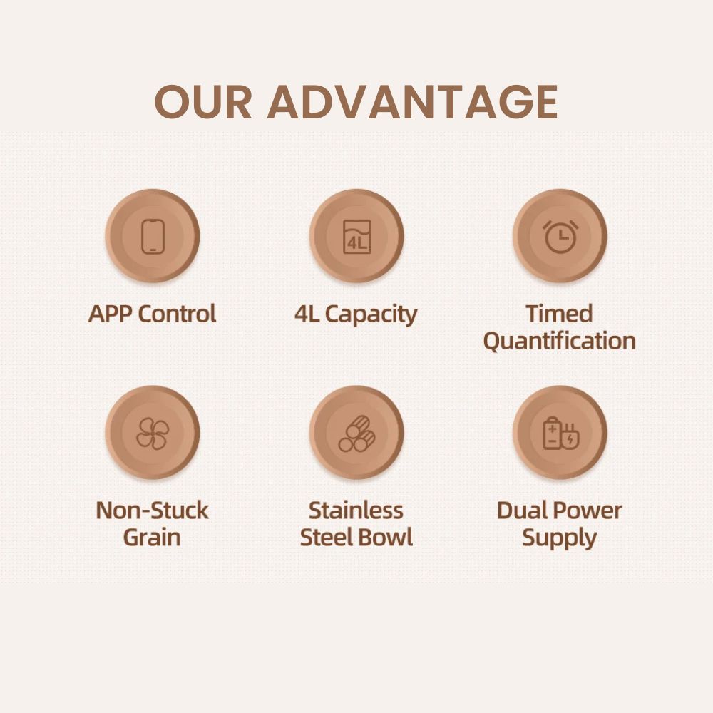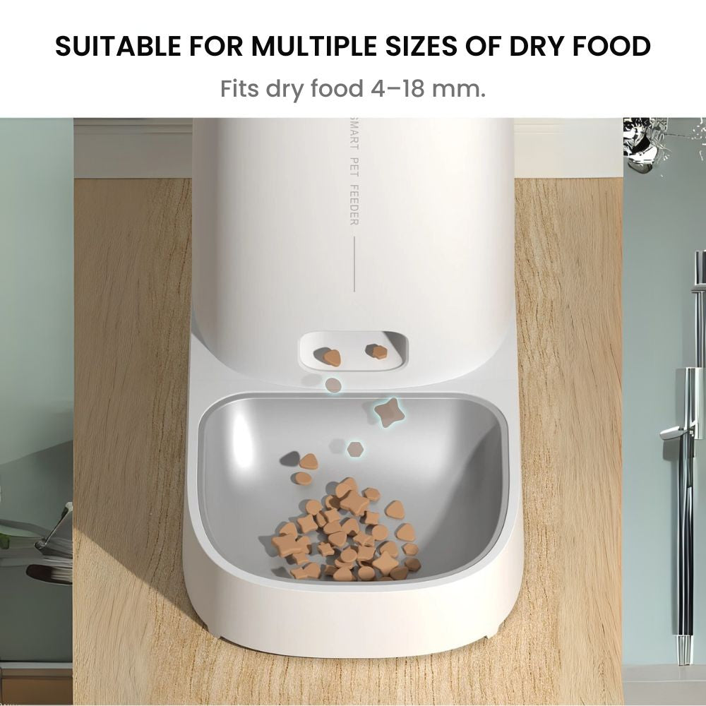 Make mealtime smarter and stress-free with this Wi-Fi-enabled automatic pet feeder. Designed for cats and dogs, it lets you control feeding schedules, portion sizes, and monitoring all from your smartphone. The 4L capacity ensures enough food storage for several days, while the dual power supply guarantees uninterrupted feeding. Built with food-grade ABS and stainless steel, it keeps meals fresh and hygienic. With its detachable design, cleaning is quick and effortless, making it the perfect solution for busy pet parents who want the best for their furry companions.