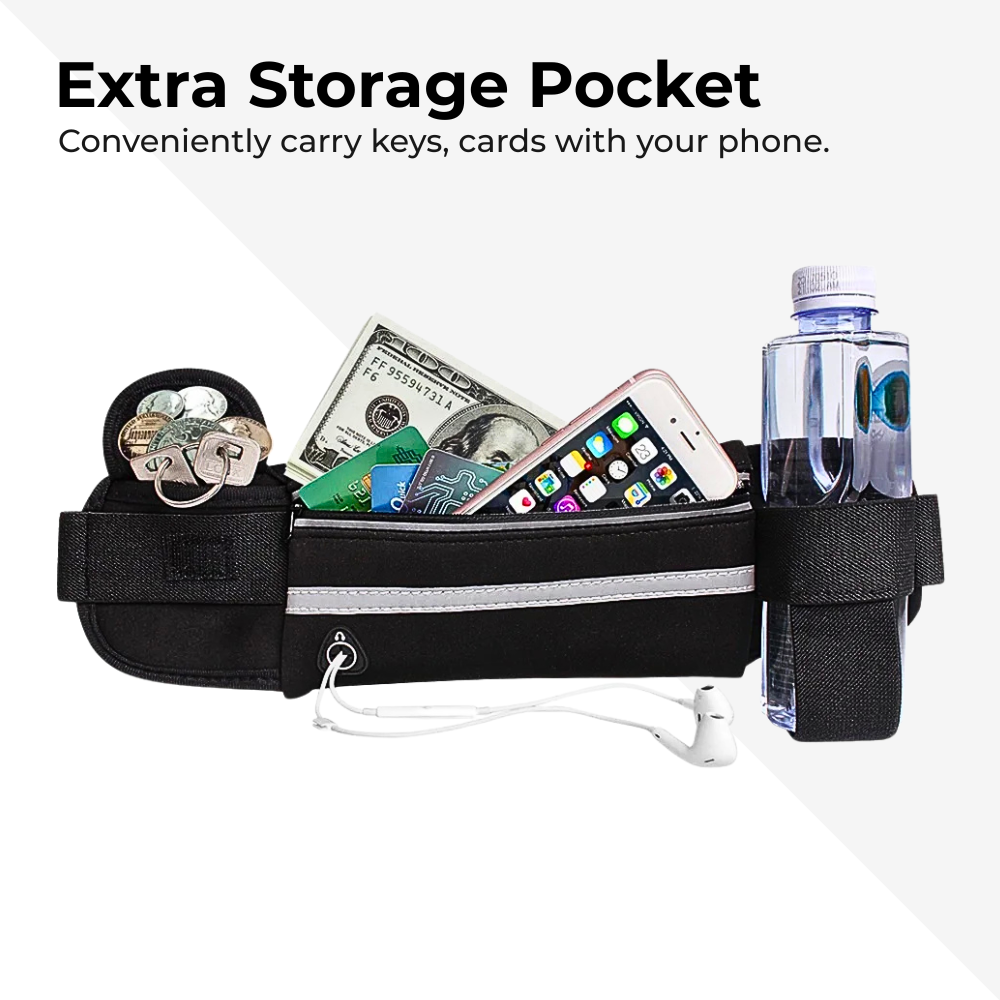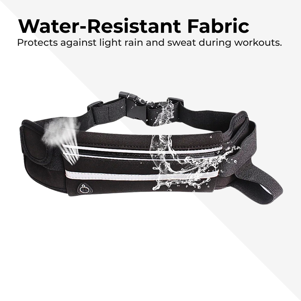Stay hands-free and focused on your run with this slim, reflective running waist belt that securely holds your phone, cards and keys while keeping them accessible and protected; engineered with a smooth zipper pocket, earbud port for on-the-go music, reflective trim for low-light visibility, an adjustable, anti-slip strap for a snug fit, and water-resistant fabric so sweat or light rain won’t slow you down — lightweight, low-profile and available in multiple vibrant colors so you can run farther, train harder, and keep your essentials close with confidence.