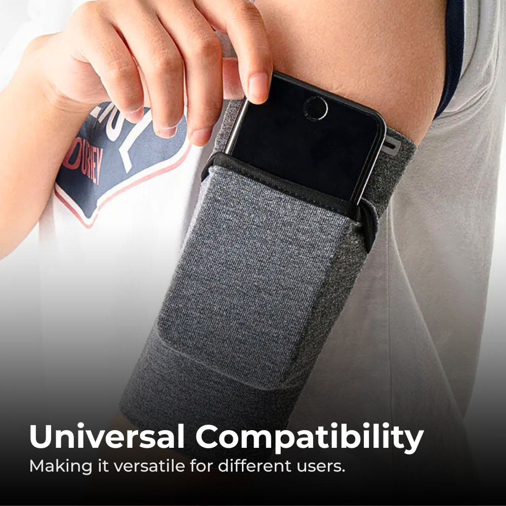 A lightweight, waterproof running armband designed for active lifestyles — keep your phone secure, accessible and charged while you run, jog, cycle or train. This breathable, snug armband fits arms from 19–37cm across four sizes, holds popular iPhone and Samsung models, and supports inline cable charging without removing the phone. Built with durable materials and a snug non-removable pocket, it protects against sweat and light rain while keeping controls and the screen easy to operate. Whether you want distraction-free runs, hands-free workouts, or a reliable place to stash your phone and small essentials, this armband delivers comfort, stability and convenience so you can focus on performance.