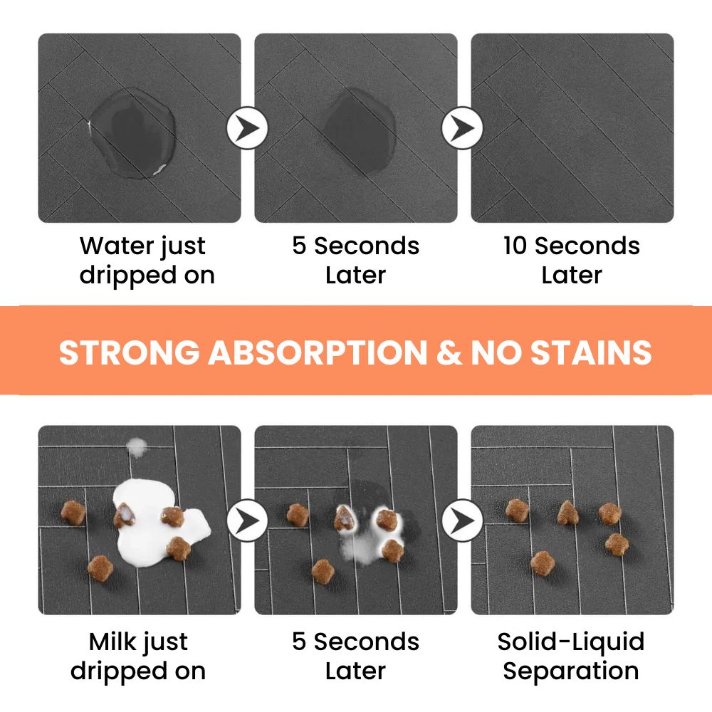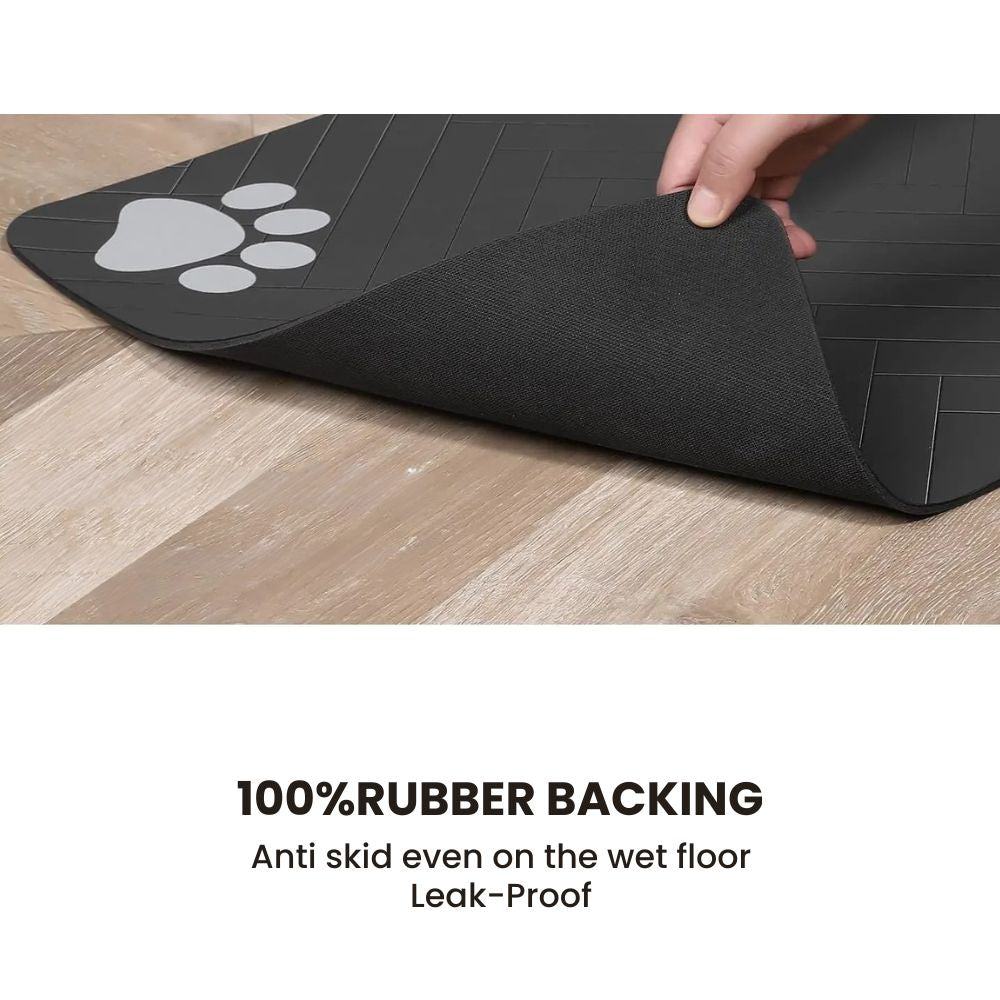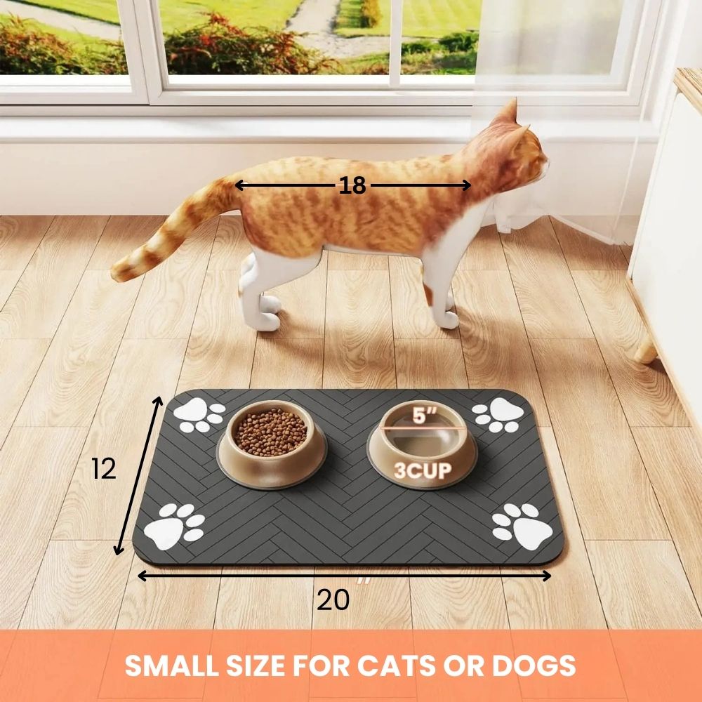 This premium non-slip pet feeding mat protects floors while creating a tidy, comfortable feeding area — engineered from durable, anti-scratch material that stops spills and keeps bowls in place; the stylish paw-print design works for dogs and cats of all sizes, and cleaning is effortless (wipe, rinse or roll up) so you spend less time tidying and more time with your pet — ideal for feeding zones, bathrooms, pet beds, and even travel or boat trays.