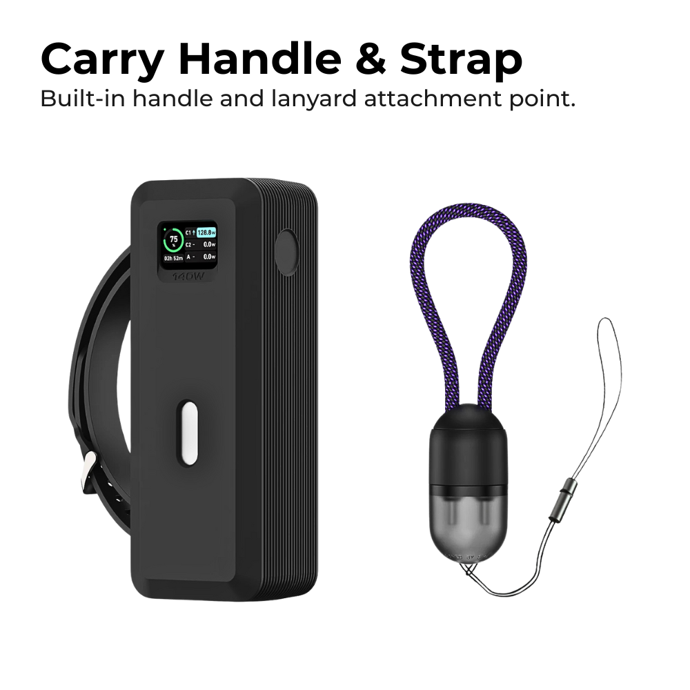 This soft yet rugged silicone protective case wraps your power bank in shock-absorbing protection while keeping every port and the display accessible — designed for on-the-go monitoring with a clear LCD window, pass-through charging, a secure carry handle and strap, and an integrated 1/4"-20 mount for attaching to tripods or rigs, it’s the perfect travel-ready sleeve that keeps your charger safe from drops, dust and everyday bumps without adding bulk.