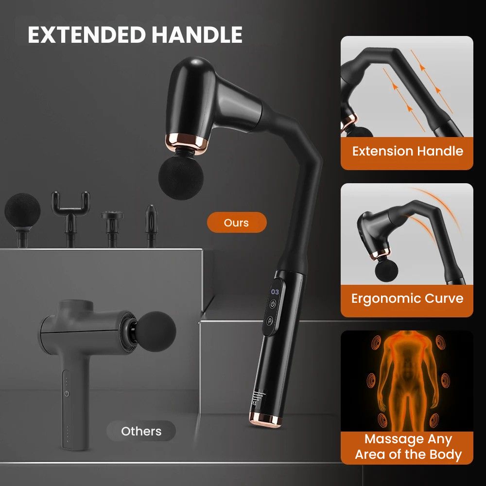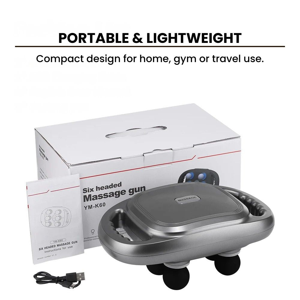 Our Six-Head Percussion Massage Gun + Foot Massager Combo delivers professional-grade muscle relief at home — a single, portable system built for athletes, desk workers, and anyone who needs fast recovery: the percussion gun features a six-head array for broad fascia release, an extendable handle for hard-to-reach zones, a clear digital LCD with 3 modes and 6 intensity levels for precise control, quiet high-frequency vibration for deep relaxation, smart 16-minute timing to avoid overuse, and multiple replaceable heads for targeted therapy — paired with a compact foot massager that provides full-foot kneading and relaxation so you can relieve tension head-to-toe, reduce soreness, speed recovery, and feel refreshed after every session.