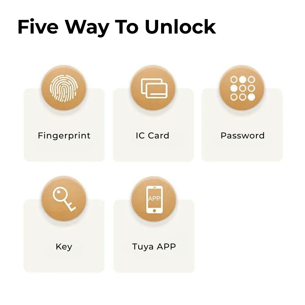 Unlock Methods | Fingerprint, Tuya App (Wi-Fi), PIN code, IC card, Mechanical key |