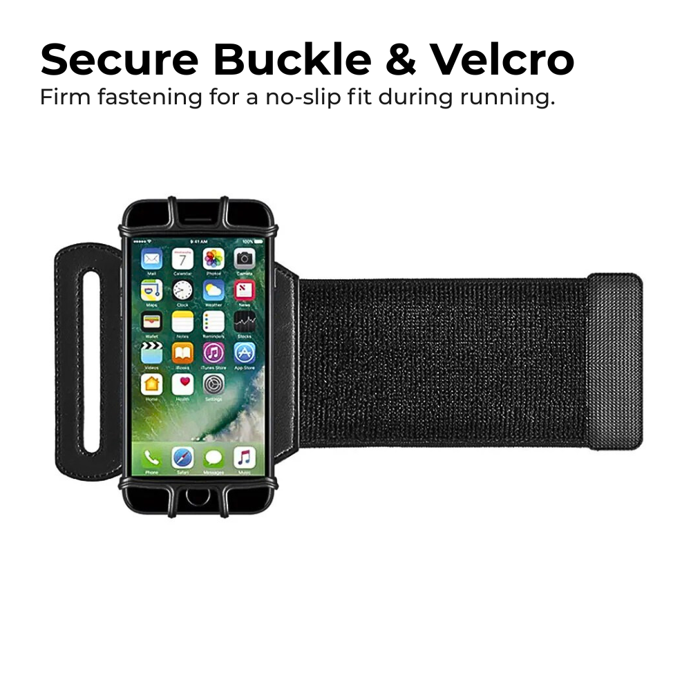 This lightweight Reflective Running Armband Phone Holder keeps your phone secure and comfortable while you run, bike, or workout — featuring a detachable magnetic phone pod for fast on/off, a full-screen touch window so you can operate your phone without removing it, 360° rotation for perfect viewing angles, an adjustable breathable strap with reflective accents for night safety, and sweatproof materials that protect your device during intense workouts — engineered to fit most smartphones (up to 6.8") and built for quick access, dependable hold, and everyday sporty use.