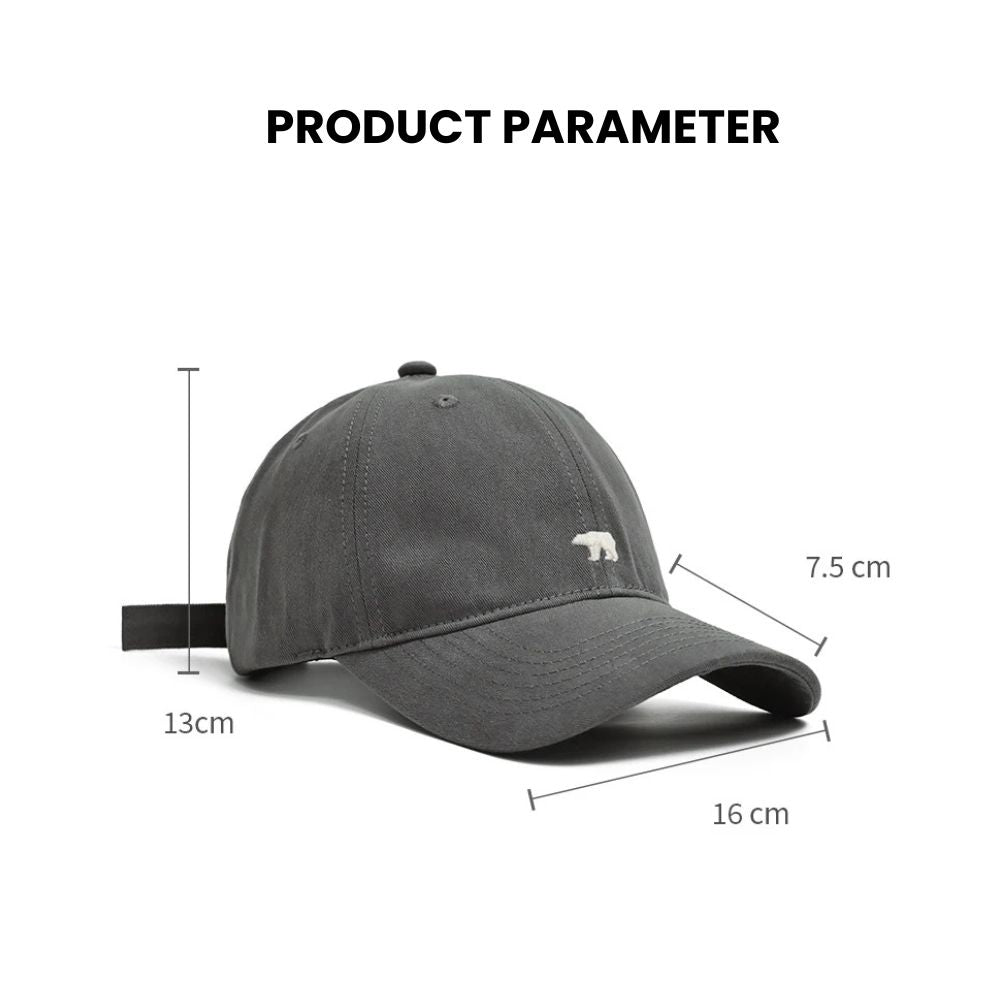This stylish bear embroidered unisex baseball cap delivers sun protection and breathable comfort in a timeless casual silhouette — crafted from soft washed cotton for a broken-in feel, it features a small embroidered bear logo for subtle style, a curved brim for sun coverage, six-panel construction for shape, and an adjustable metal-buckle strap so it fits most heads; lightweight and breathable for all-day wear, it’s ideal for men and women who want a versatile, easy-care hat that elevates everyday outfits.
