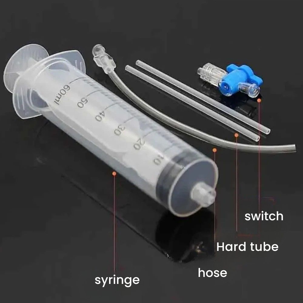 Maintain peak braking performance with this easy-to-use hydraulic disc brake bleed kit. Designed for both mountain and road bikes, it provides everything you need to remove air bubbles, flush out old fluid, and keep your braking system responsive and safe. The high-quality syringe ensures smooth operation, while the flexible hose and multiple adapters make it compatible with most hydraulic brake systems. Whether youβre a DIY cyclist or a pro mechanic, this kit saves time, reduces mess, and extends the life of your brakes, ensuring you can ride with confidence every time.
