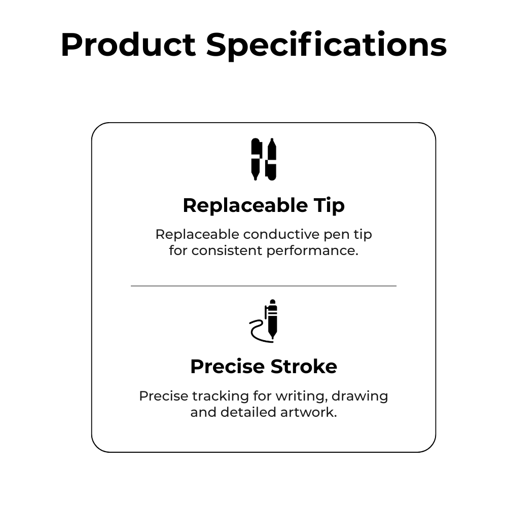 The Universal Rechargeable Stylus Pen brings precise, natural-feeling strokes to any capacitive phone or tablet — no pairing required (double-click to wake). It features a built-in rechargeable battery with Type-C charging and an LED battery indicator, plus a replaceable conductive tip for long life and smooth, low-latency tracking. Perfect for comfortable writing, sketching, and note-taking on iOS, Android, and Windows devices.