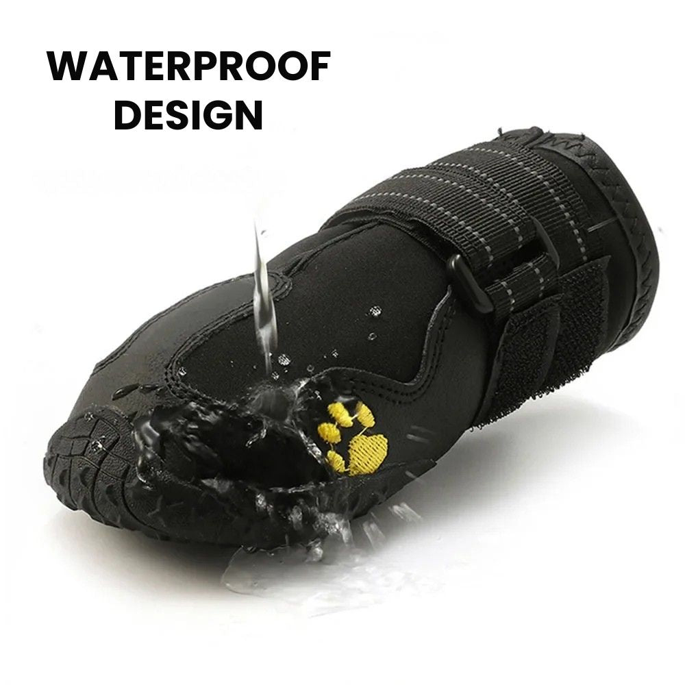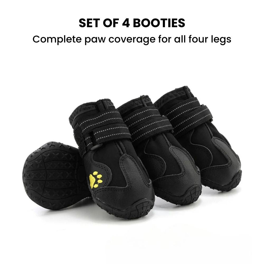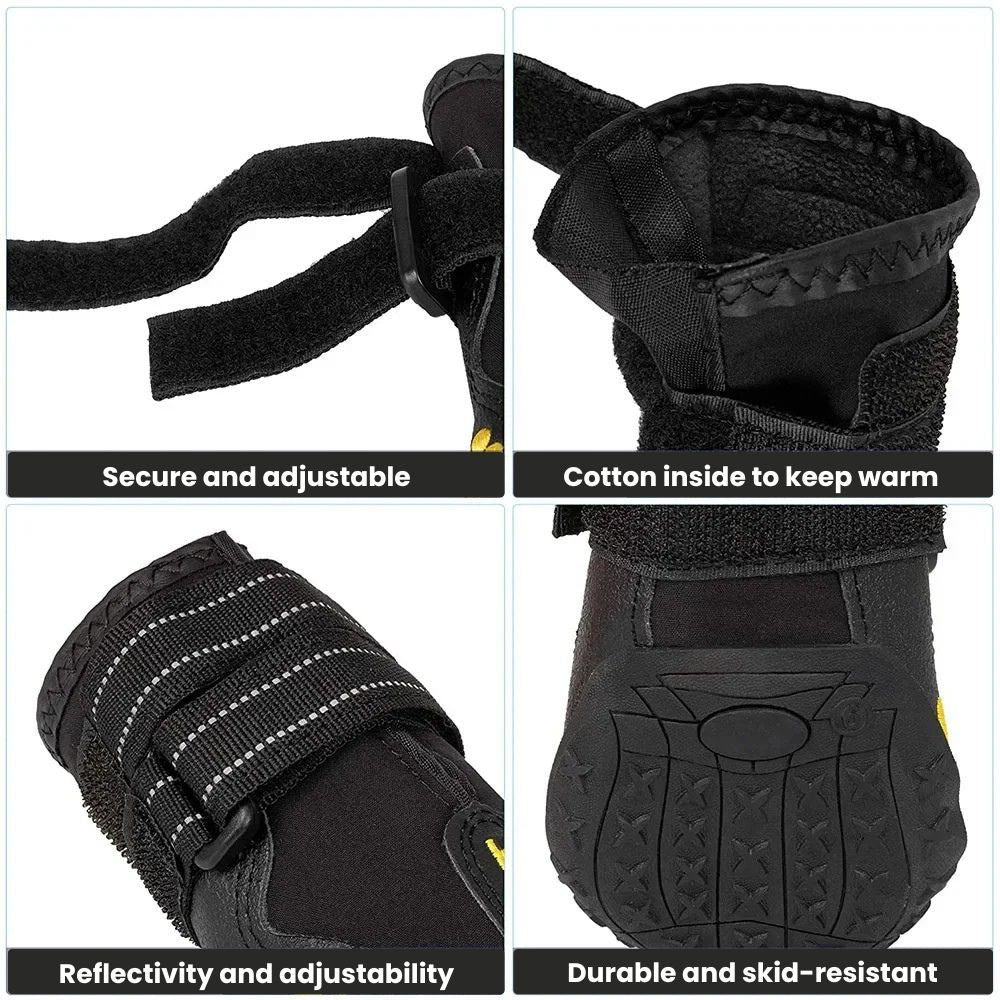 These durable dog boots protect your pet’s paws from cold, salt, mud and rough terrain while keeping them comfortable — designed with a soft fleece lining for warmth, rugged non-slip rubber traction for secure footing, and three adjustable Velcro straps to stay put on active dogs; lightweight and flexible for natural movement yet tough enough for hiking, snow, rainy walks, or everyday outdoor protection; easy to put on, easy to clean, and built to extend outdoor season and keep paws healthy and injury-free.