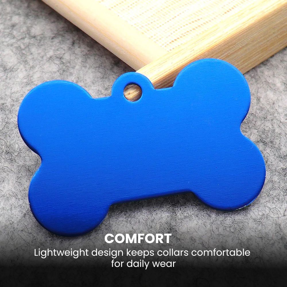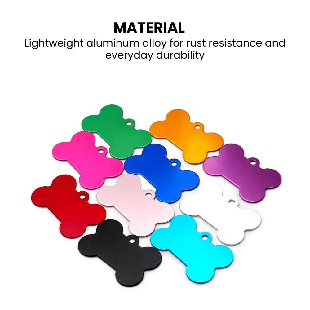 Upgrade your pet’s collar with this value pack of 20 lightweight, bone-shaped aluminum ID tags in assorted vibrant colors — perfect for everyday wear, gift packs, or grooming/kennel use. Each tag is corrosion-resistant, easy to attach, and sized to suit breeds from small cats to larger dogs; the smooth metallic finish accepts engraving, stamping or permanent marker so your pet’s name and contact info stays readable. Built to be practical and stylish, these tags add safety plus personality while keeping collars light and comfortable.