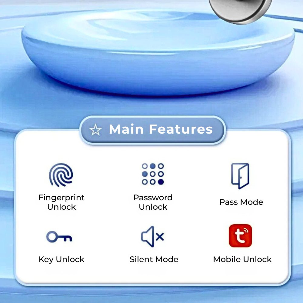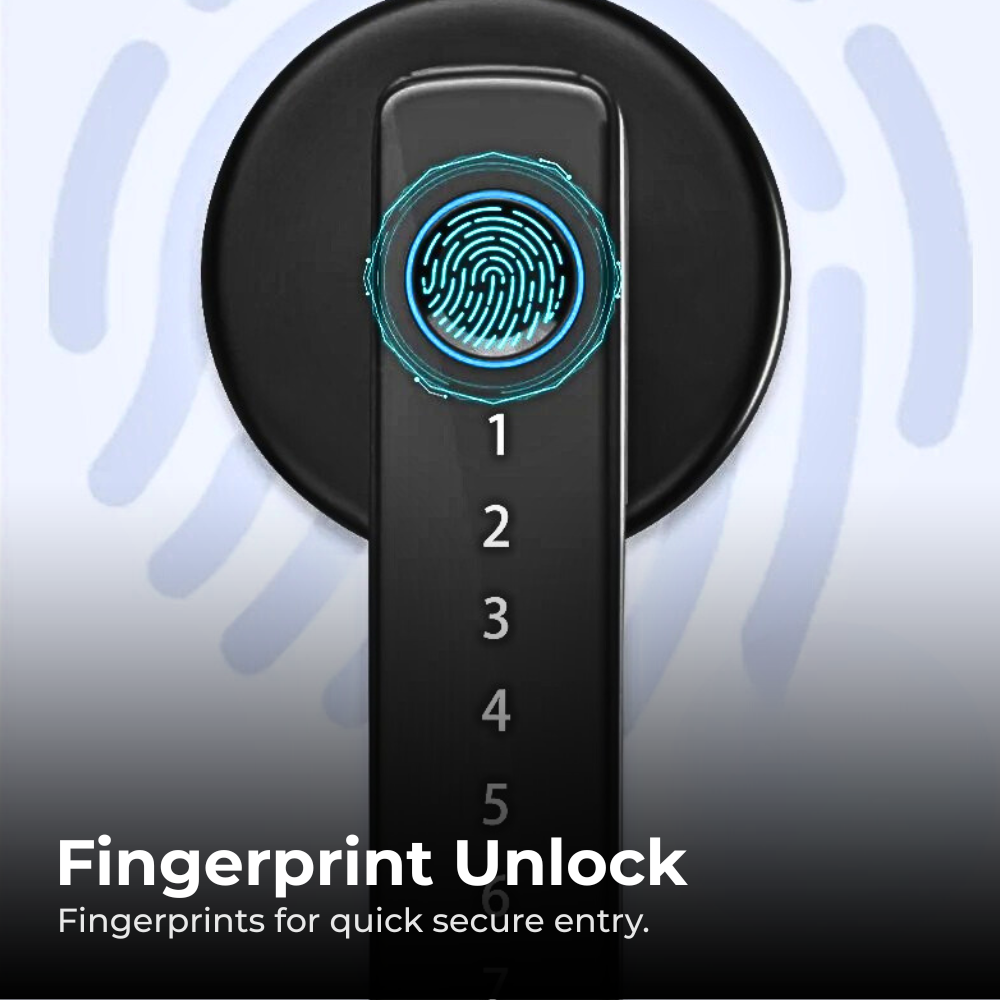 This modern smart fingerprint door lock gives you fast, secure access and total control — unlock in 0.3s with fingerprint, use PIN or RFID card, or open remotely with the Tuya app; share temporary or virtual passwords for guests, activate pass mode for hands-free entry, and rest easy with built-in tamper alarm and low-power alerts. Designed for easy DIY installation, adjustable for most doors, powered by 4×AAA batteries with Type-C emergency USB, and built from durable aluminum alloy — it’s the simple, flexible upgrade that brings smart convenience and better home security.